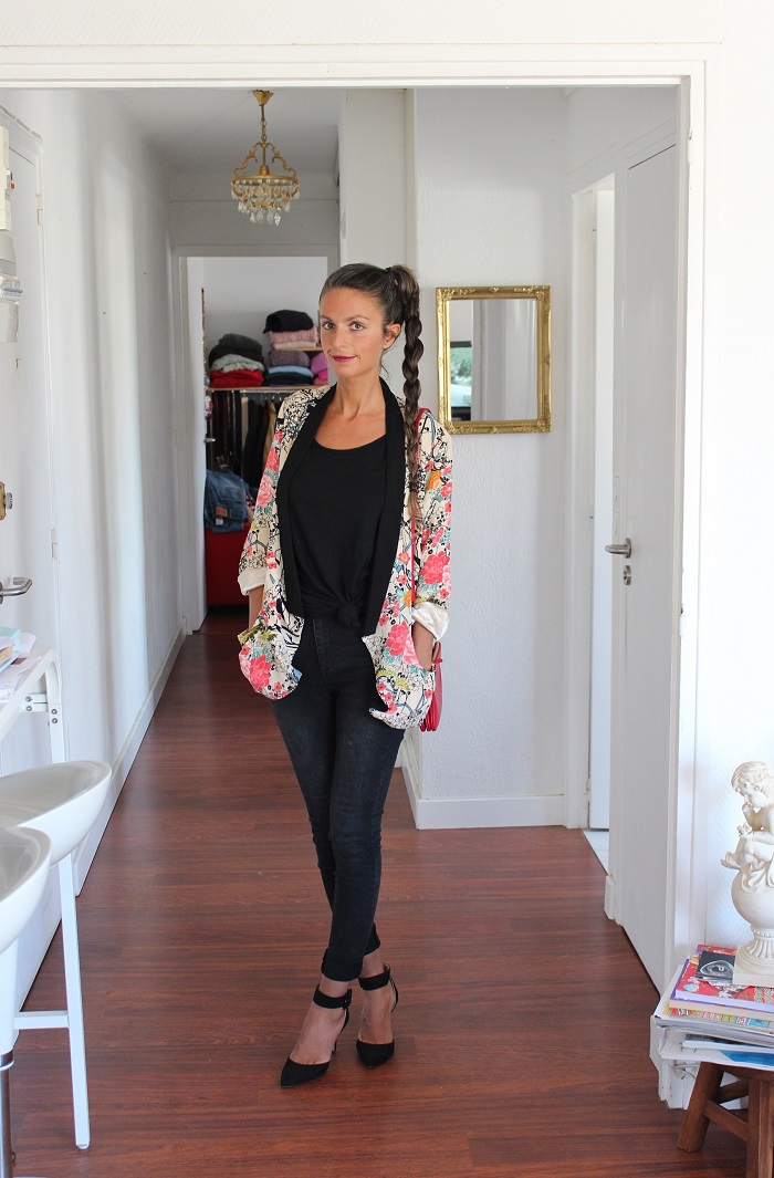 En effet, j'ai mis la main sur une jolie veste à la coupe parfaite, mi-kimono, mi-blazer, avec un imprimé fleuri frais et inspirant et des couleurs pleines de pep's !